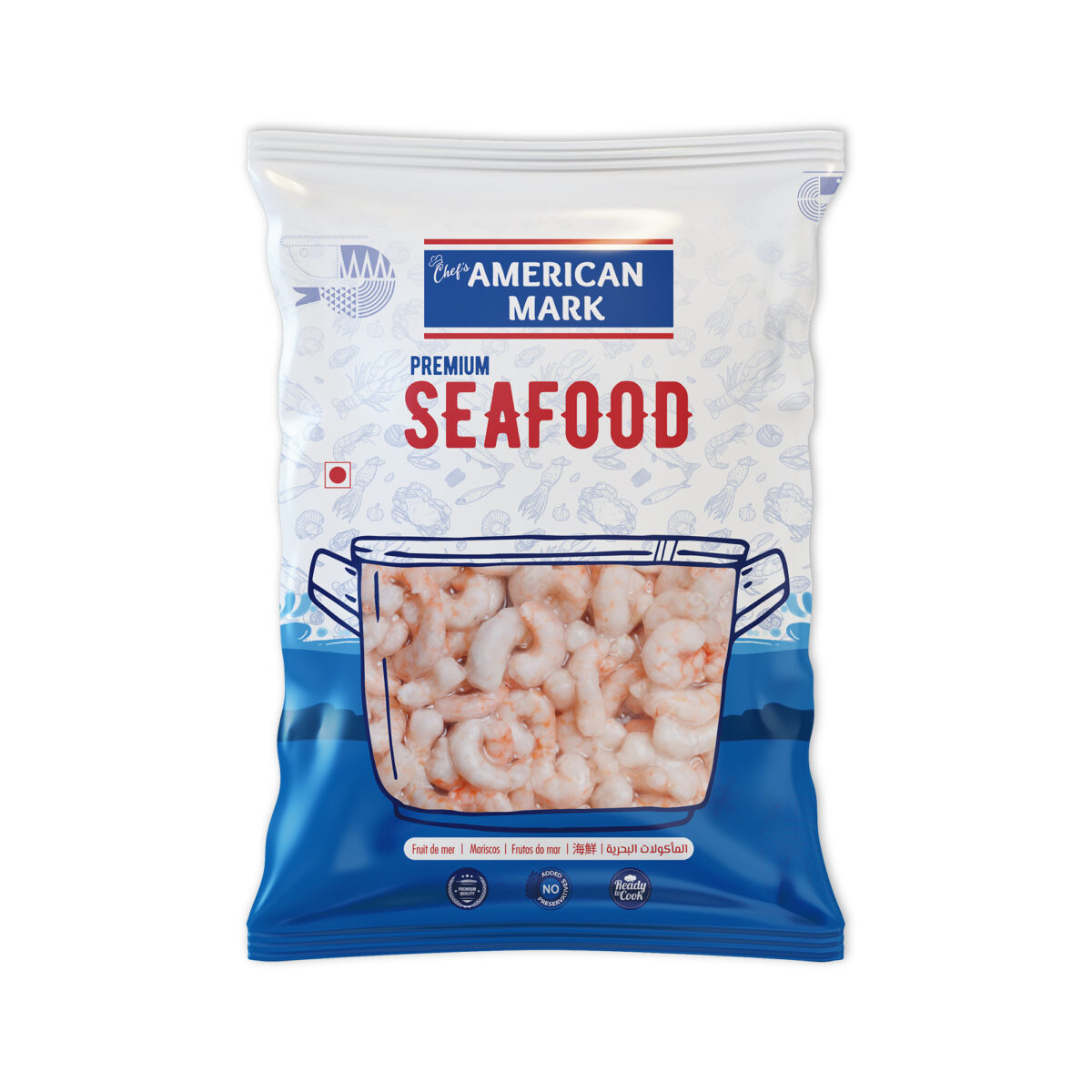 Fresh, peeled, and deveined American Mark Frozen Shrimps, flash-frozen for perfect flavor and texture. Quick, versatile, and ideal for healthy cooking.