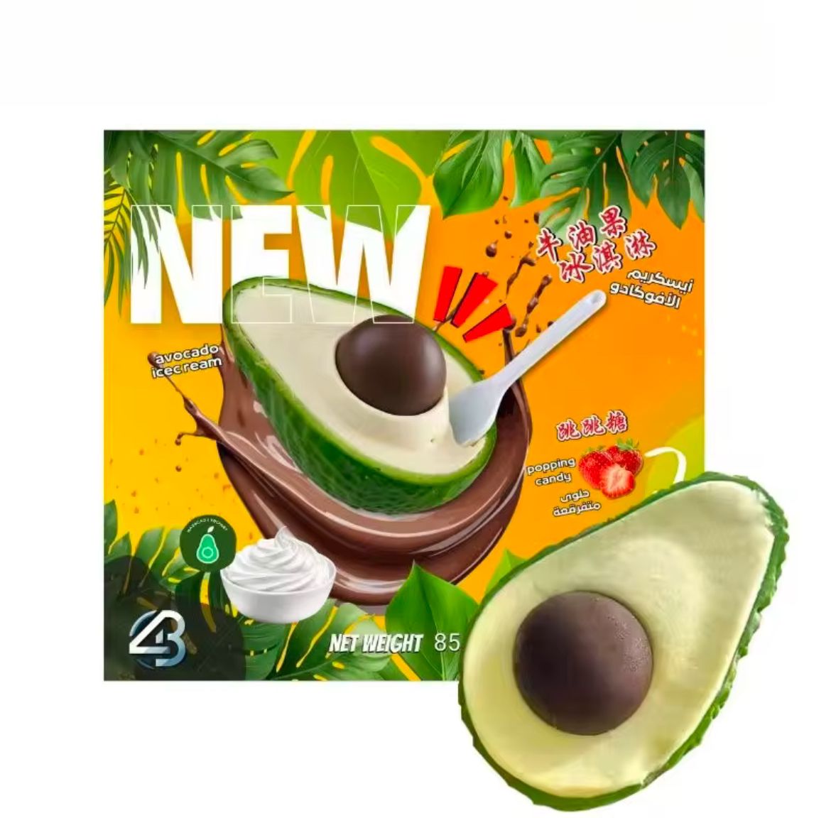 The viral dessert that looks like an Avocado but is actually a sweet treat in disguise! Green shell as the skin, creamy vanilla-avocado mix inside, and a round chocolate “seed” in the middle. But the real fun begins when you break it open and taste the Bubblegum Popping Candy inside! Why settle for a basic ice cream when you can have one that crackles, fizzes, and reminds you of childhood sugar highs?