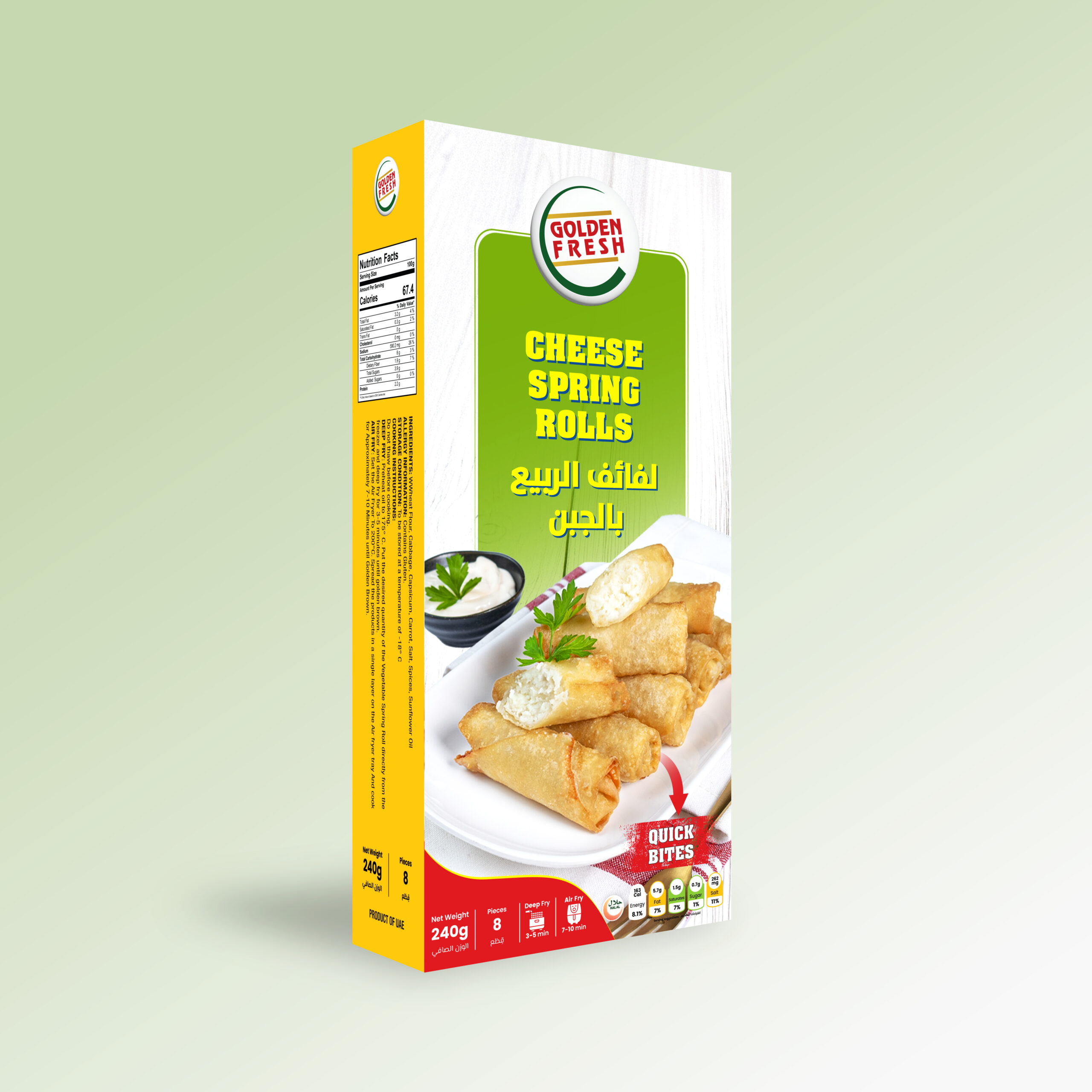 Our cheese spring rolls are easy and versatile to prepare, suitable for deep-frying, oven-baking, or air-frying, ensuring a perfectly golden and crispy finish every time. Ideal as a starter, party snack, or side dish, they pair beautifully with sweet chili sauce, ketchup, or garlic dip.