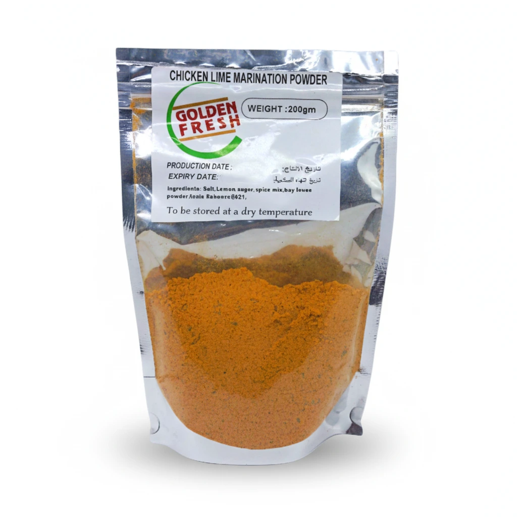 Chicken Lime Marination Powder is a flavourful blend crafted to infuse chicken with a refreshing citrus tang and balanced seasoning. Combining zesty lime notes with carefully selected spices, this marination powder enhances the natural taste of chicken while helping to improve tenderness and juiciness.