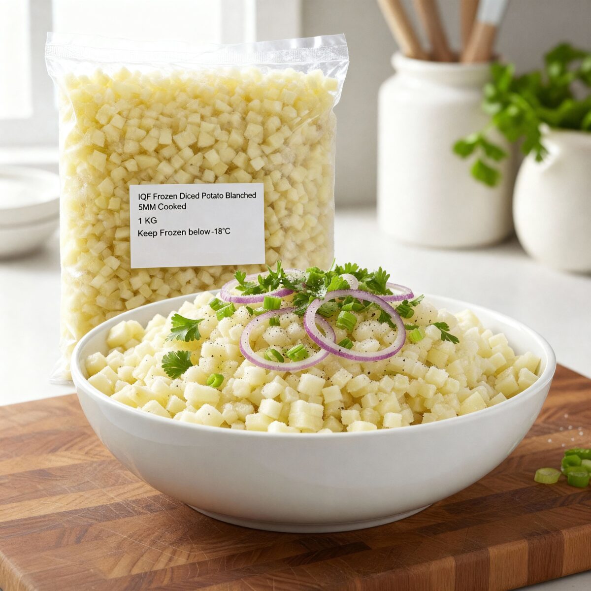 Diced Potato 5 mm offers precision-cut potato pieces designed for consistent cooking and reliable results. Carefully diced into uniform 5 mm cubes, these potatoes ensure even heat distribution, making them ideal for recipes that require quick cooking and accurate portioning.