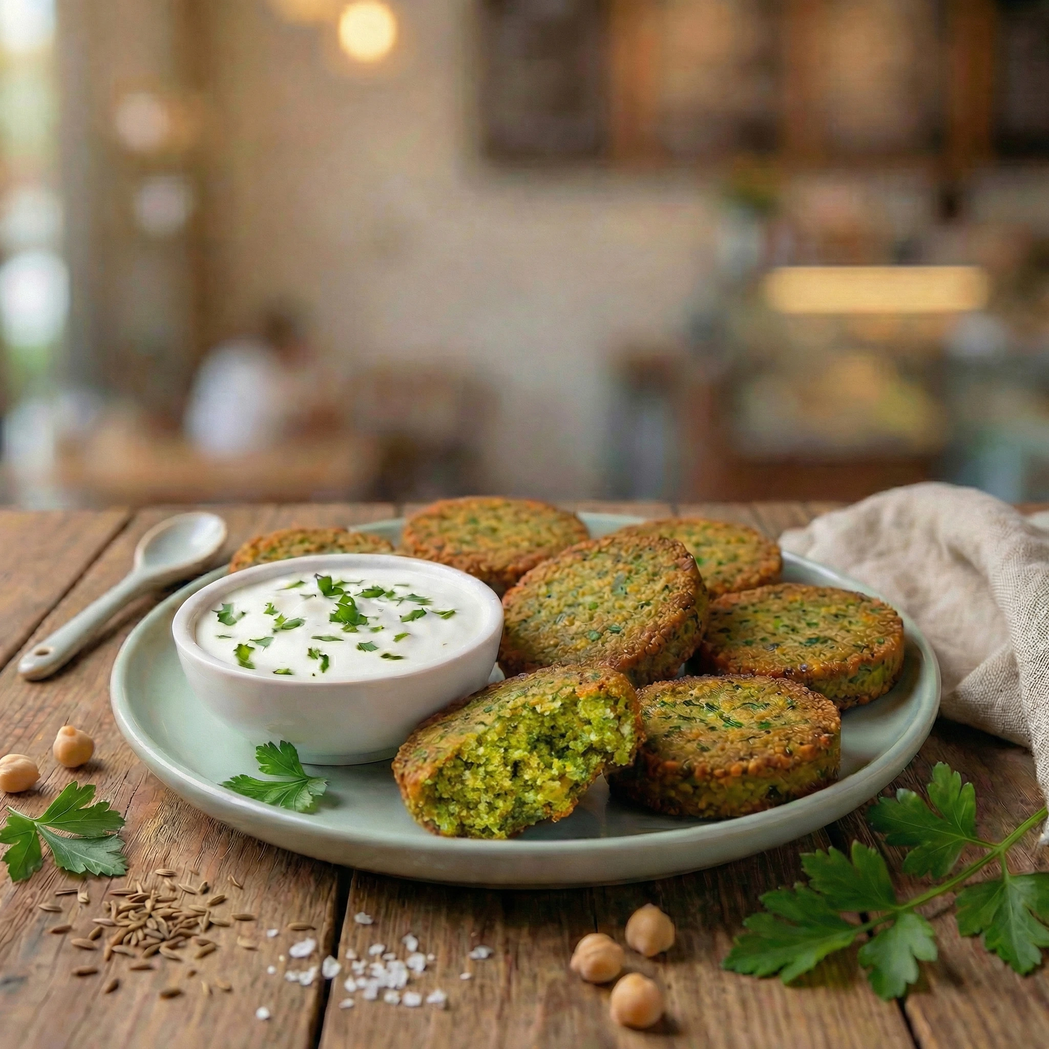 • Crispy outside, soft and flavorful chickpea falafel inside