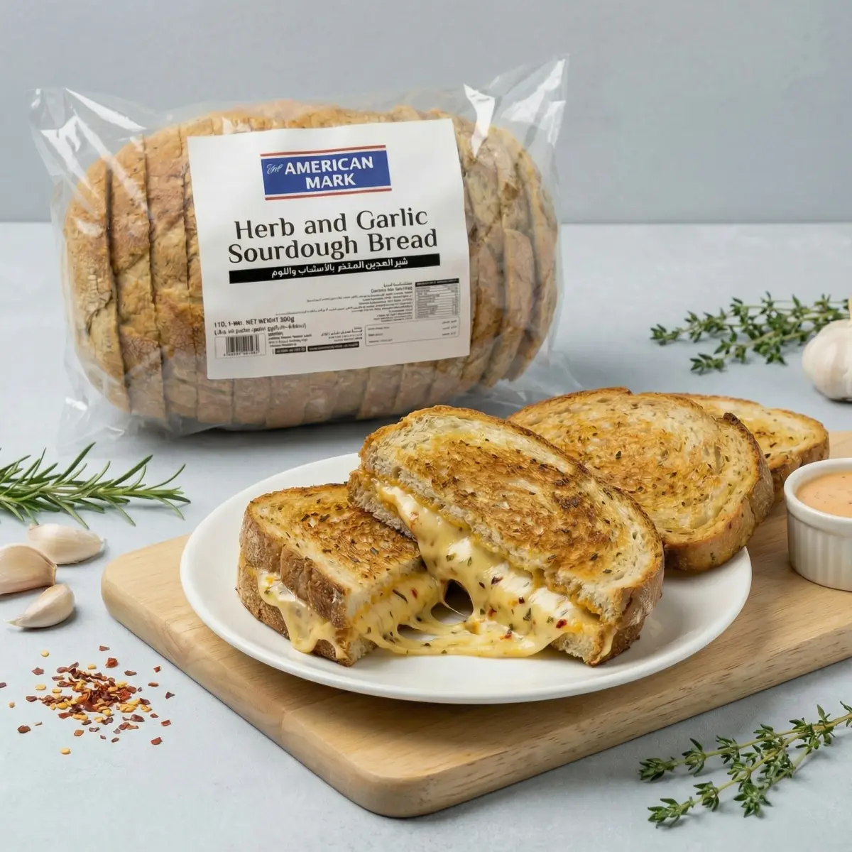 Delight your senses with the rich aroma and flavorful bite of the Herb & Roasted Garlic Sourdough Loaf (900g) by American Mark. This artisanal loaf is a masterpiece of modern baking, combining the classic, gut-friendly tang of natural sourdough with the deeply satisfying notes of slow-roasted garlic and garden-fresh herbs. It is the ultimate choice for foodies and professional chefs in Dubai and the UAE looking to elevate their bread basket.