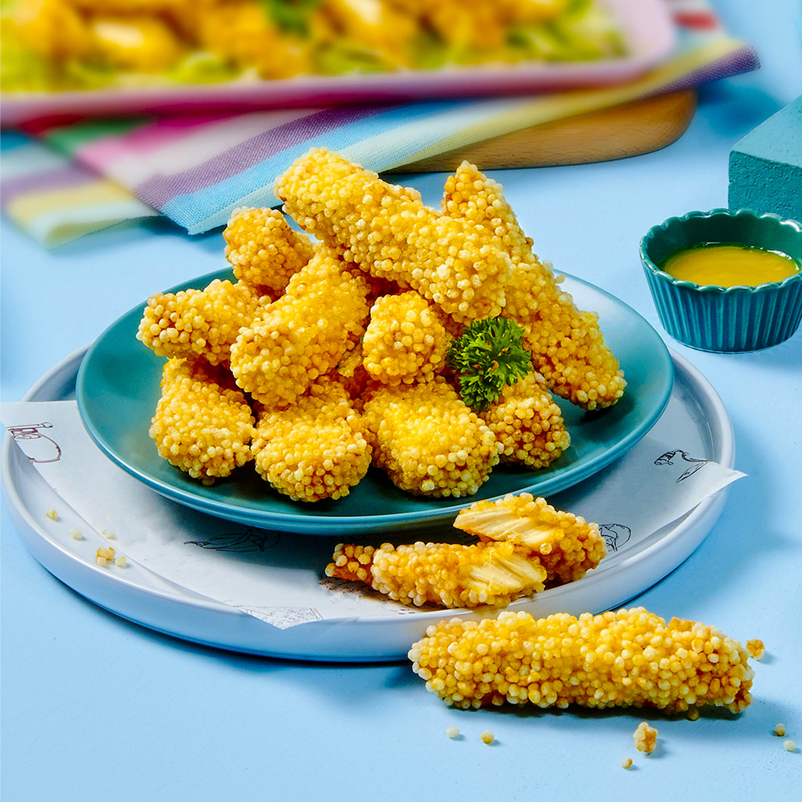Crispy chicken strips coated in Korean-inspired seasoning.