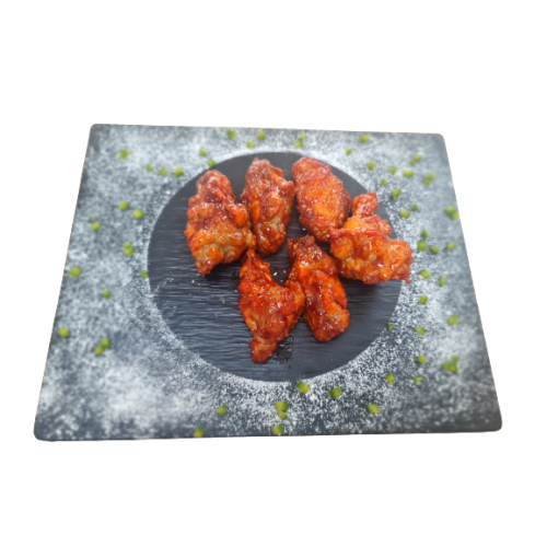 • Authentic Korean Flavor: Tender chicken wings marinated in rich, tangy, mildly spicy sauce.