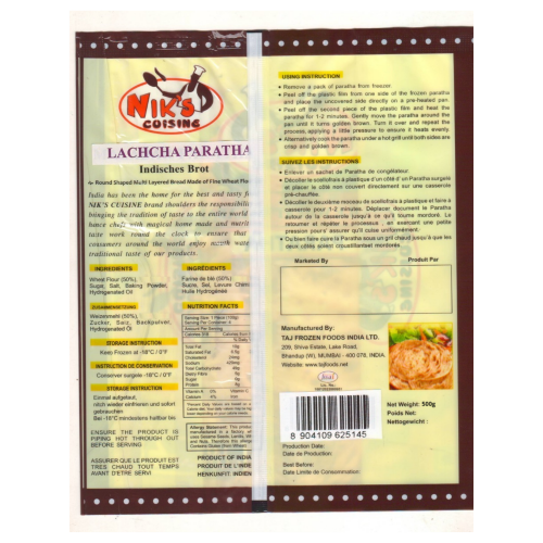 Extremely versatile, Niks Malabar Paratha can be pan-fried, toasted, or warmed directly from the freezer. They pair beautifully with curries, vegetables, eggs, meats, or can be enjoyed on their own as a snack. Each paratha is layered to perfection, ensuring an authentic taste and satisfying texture.