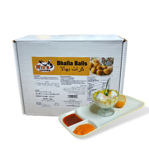 Dahi Bhalla (also known as Dahi Vada) is a classic North Indian chaat that’s famous for its perfect balance of flavors — the cooling yogurt, sweet and tangy chutneys, a sprinkle of chaat masala, and the melt-in-your-mouth bhallas. With Niks Veg Dahi Bhalla Balls, you can recreate this authentic experience effortlessly. Simply soak the balls in warm water until soft, squeeze gently, and serve them topped with fresh yogurt, tamarind chutney, mint chutney, and your favorite garnishes.