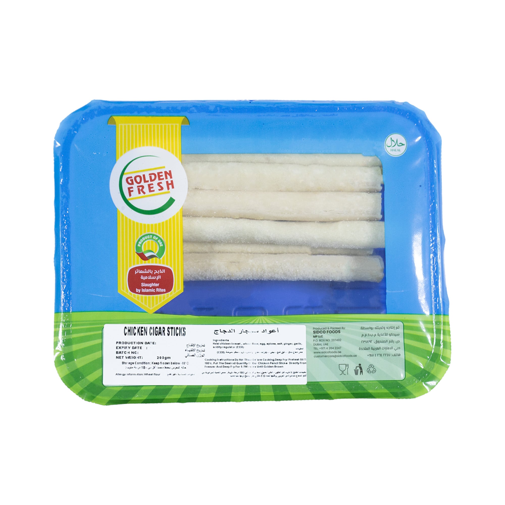 Crispy and flavorful chicken cigar sticks in a 200 g pack with 8–12 pieces, perfect for snacks and starters.