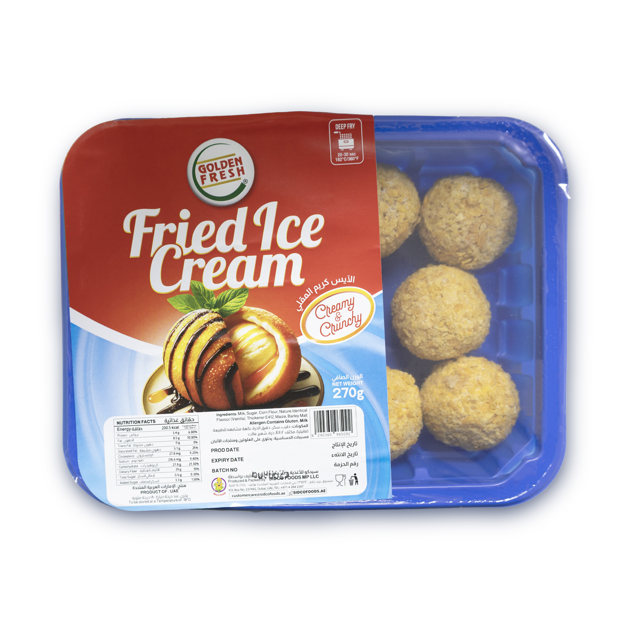 The Fried Ice Cream (9 pcs / 270 g) is a premium dessert product designed for convenience and indulgence. Each piece features a smooth, creamy ice cream core encased in a crispy, golden outer coating, providing a perfect contrast of textures and flavors in every bite.