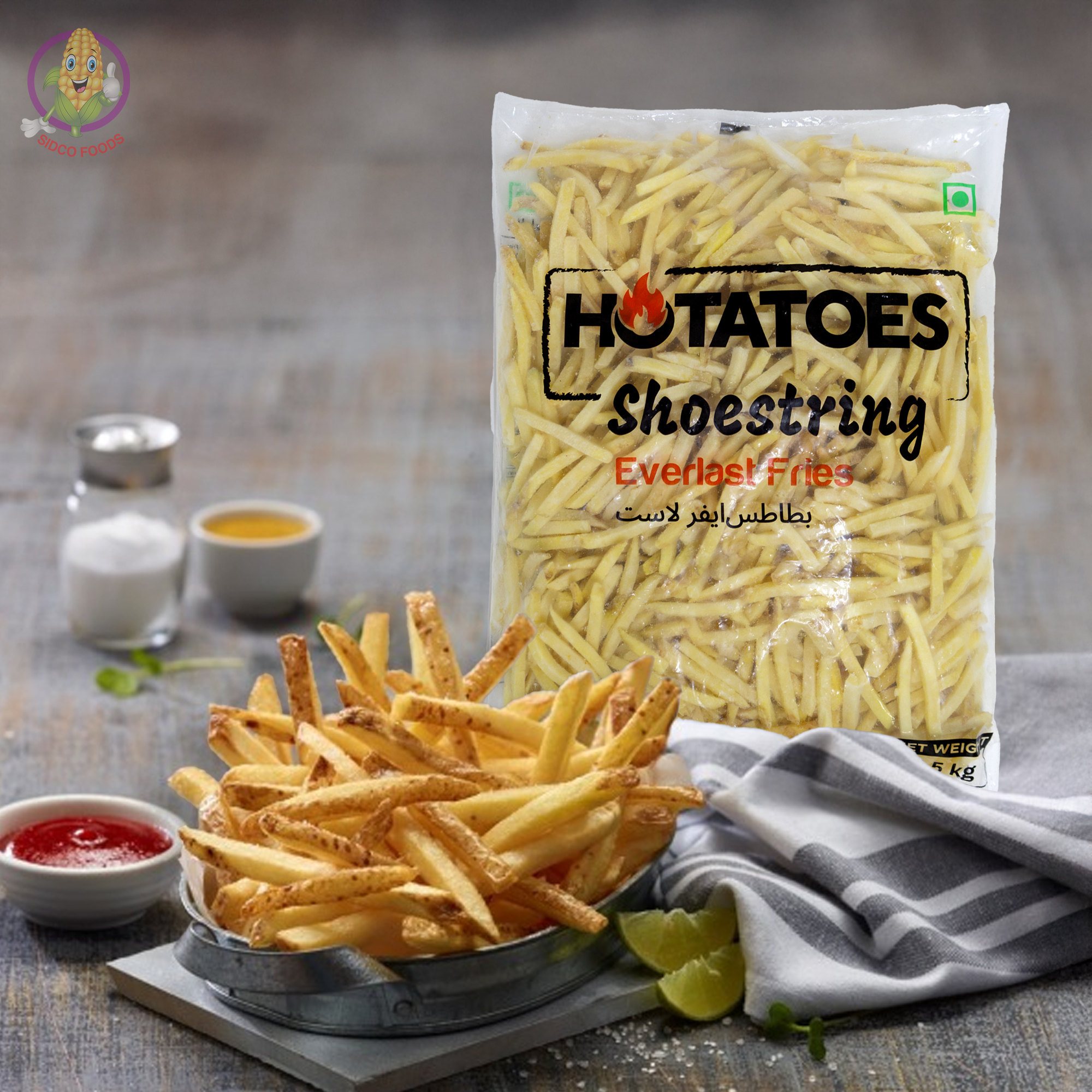 Indulge in our crispy skin-on fries, meticulously thin-cut and coated to perfection. Made from premium British potatoes, these fries offer a delightful crunch and a burst of flavor with every bite. Perfect for any meal, these skin-on fries are sure to become your new favorite!